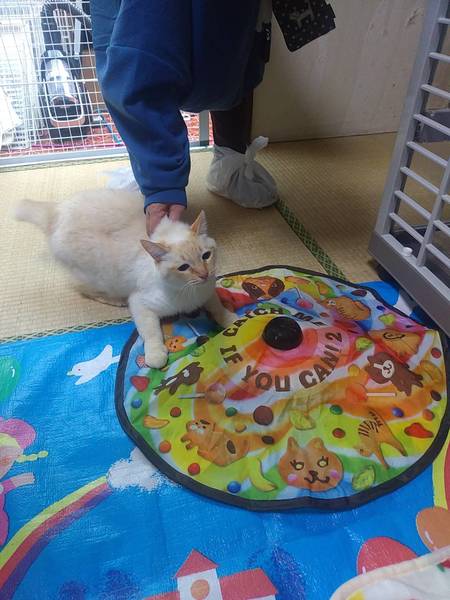| 特徴(性格など) | ⑤チョコちゃん メス キジサビ 9歳くらい カギ尻尾 激甘えん坊で、よじ登ってくる。抱っこ大好きですりすりが止まらない。 エリザベスカラーで首の周りがまけている フードアレルギーあり ⑥トラオ オス 茶トラ 9歳くらい カギ尻尾 耳カットあり 初めて会った人の側にもよって来ていました。 ⑦マッシュ メス 白シャムMIX 瞳はブルー 9歳くらい ボブテイル 人間大好きで、ずっとスリスリしてくる。 抱っこは苦手な甘えん坊。 とても人懐っこくて可愛いです。 ⑧ことちゃん メス キジサビ 9歳くらい ボブテイル キャットタワーの上から抱っこをせがんできます。 足を怪我をしていたところを飼い主さんが保護して右の前足の切断手術をしたそうです。 日常生活には特に支障はありません。 マンションなどであまり走り回らない大人しい猫ちゃんを探してる方にはお勧めです。 |