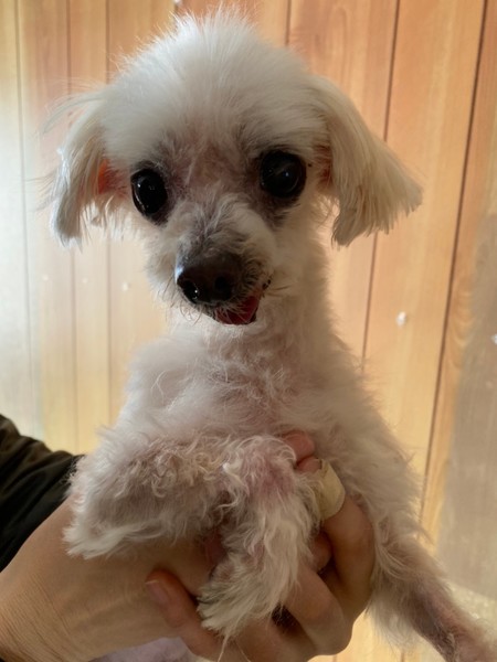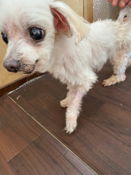 | 特徴(性格など) | マルチーズ 体重2.35キロ 長年の毛玉のせいで、後ろ足の足根関節のところまで付けて歩きます。 その歩きかたについては問題ないということです。 まだ新しい環境に慣れてないからのことだと思いますが、大人しい子です。いろんなことを覚えれば、だんだん表情豊かになっていくと思います。 シニアになっていますので、ゆっくり甘えさせてくれる里親様をお待ちしています。 |