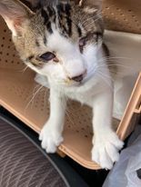 | 特徴(性格など) | ◆性格や特徴 ・1歳未満の雄(去勢済み) ・種類はキジトラ白猫だと思います。 ・体重3㎏ ・さみしがりや ・人懐こい ・とてもよく鳴きます(人の気配があると鳴いてしまいます。一人で静かにしている時と触っているとき のみ鳴きやみます) ・トイレは覚えられます。 ・食べ物もドライフードを食べられます。 ・片目がなく、片目も視力が弱い状態です。 ◆健康状態 ・3種ワクチン済みです。 ・駆虫済です。 ・エイズ白血病検査は陰性です ・去勢済みです ・脳障害の可能性が有ります(同じところをぐるぐる回る) ・右目を失い、左目も視力が弱い状態です。 |