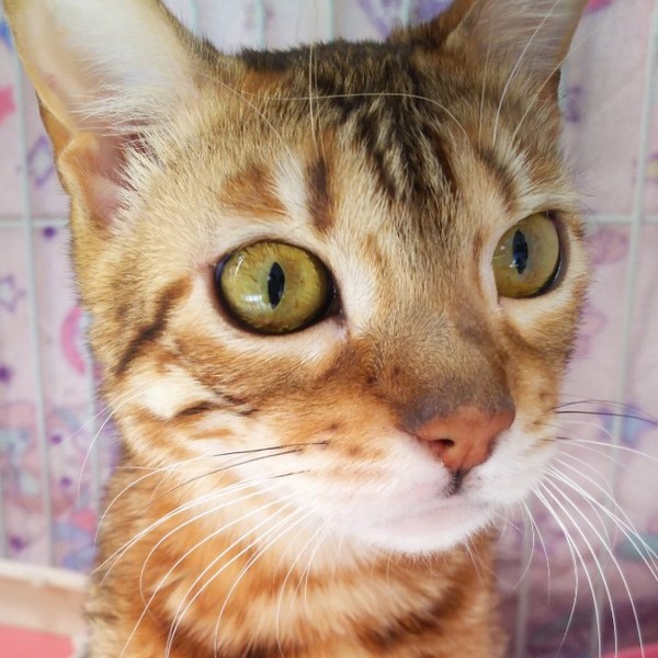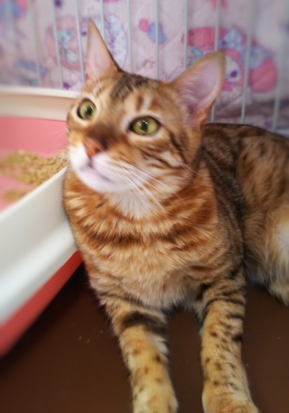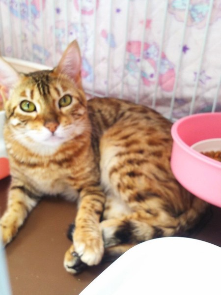 | 特徴(性格など) | ベンガルの女の子です。 初めから警戒心も無く穏やかな子です。 大人しい感じがします。 預かりさんのお宅で過ごす様になってまだ日も浅いので、これからもっと色々な表情や仕草を見せてくれると思います。 元気に過ごしています。 ワクチン接種をしたばかりなので期間を空けてから避妊手術を予定しています。 |
