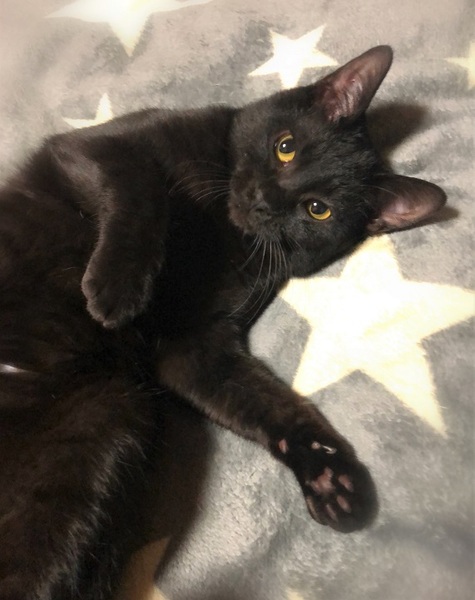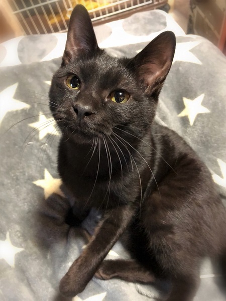 | 特徴(性格など) | 仮名、もち太 真っ黒ではなく、よく見るとシマシマ模様が足に入っています。 とても人に慣れていて、どこにいても人に撫でられるとゴロゴロ~ 抱っこと膝の上が好きな甘えん坊です。 |