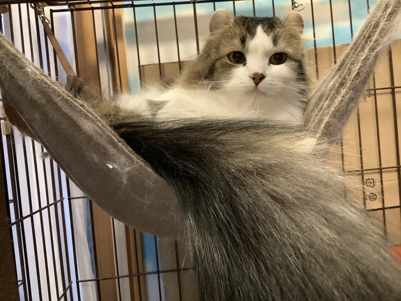| 特徴(性格など) | お耳がカールしてます。しっぽはタヌキのようにふわふわです。長毛で、よく言う事を聞く、お利口さんです。 性格は大人しく、少し怖がりですが、よく懐きます。とても食いしん坊です。名前ハッピーです。 |