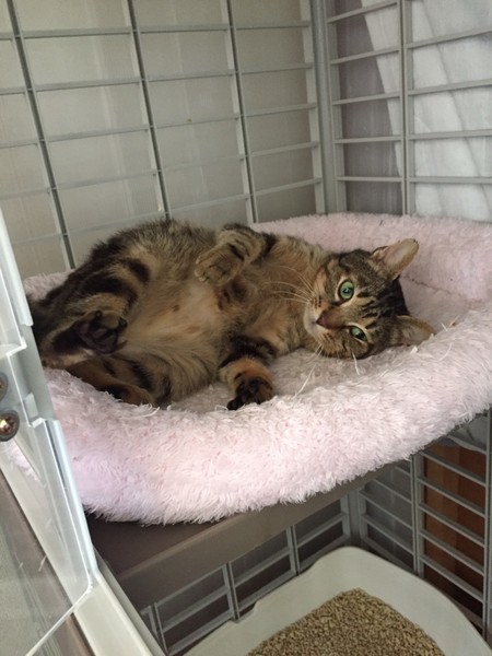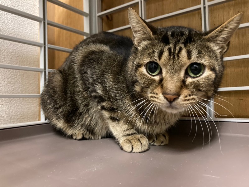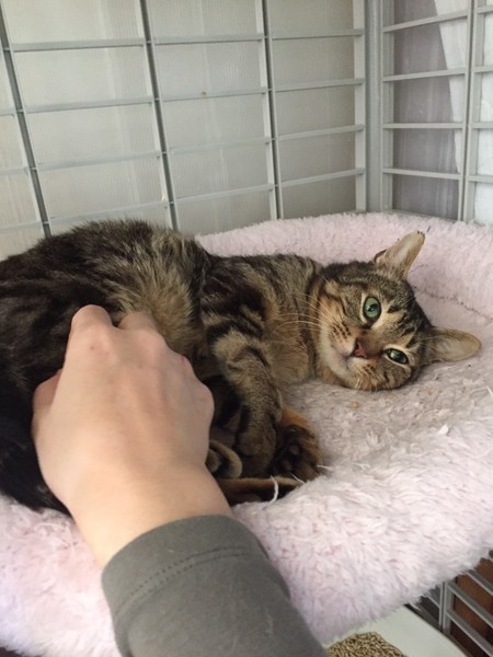 | 特徴(性格など) | 2020.6.11生まれ(推定) 毛色:キジトラ ちょっぴりビビりなキジトラ柄の男子。 なでなでしてもらうのが大好きで、撫でてくれる人の手にスリスリとお顔をこすりつけます♡ お腹を見せて喉をゴロゴロ鳴らしもっと撫でて~とアピール♪ たくさんナデナデしてくれるお家の子になれると嬉しいな!! |