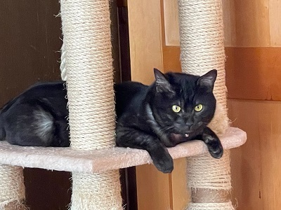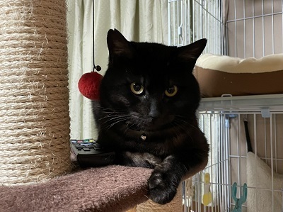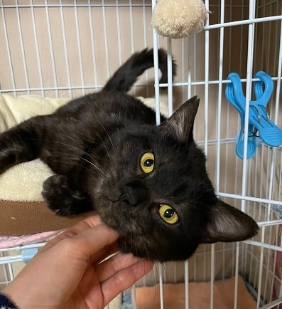 | 特徴(性格など) | 食欲旺盛で少しぽっちゃりめ。 毛色は真っ黒ではなく、毛をかき分けると根元の毛が白かったりするブラックスモークです ビビリくんですが攻撃性はなく、ゲージの中では撫でれますが抱っこはまだ怖いみたいです |