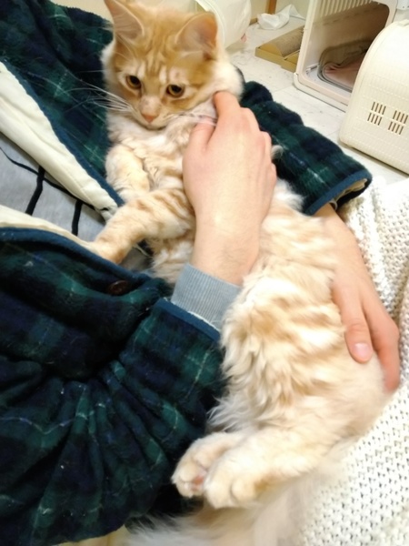 | 特徴(性格など) | 【元気いっぱい仲良しコンビ♡ そう&ぼんこ♪】 サラサラの薄いクリームタビー長毛に、 くりくりした大きなおめめが魅力の男の子「そうくん」(推定1歳)と キラキラした瞳がチャームポイント、 ちまっと小柄なキジトラ美少女「ぼんこ」ちゃん(推定生後6ヵ月)♡ ふたりは、 元気いっぱいな仲良しコンビ^^ 一緒に遊んだり、くっついてねんねしたりと、とても仲良しなんですよ♪ ふたりとも、基本の性格は「ビビリさん」な面がありますが ゆっくりと愛情を注いで見守っていただければ 抱っこされるのが大好きで人のお腹の上でねんねしちゃったり♪(そうくん) ナデナデして~~!とゴロゴロ甘えんぼに来てくれたり♪(ぼんこ) 人に甘えることが大好きな子に変身します! ぜひ、ゆっくりと大きなお気持ちで二人を見守ってあげてください^^ まだ若いふたりですから ご家族に心を開いてしまえば 一緒に猫じゃらしで遊んだり、 リラックスタイムにはお膝に乗って甘えてきたり、と 笑顔あふれる猫さんライフを送れること間違いなし♡ そうくんとぼんこちゃんはとても仲良しなので、 生涯ずっと仲良く寄り添って暮らしてほしい。という願いから 「2匹一緒にお迎えいただける方」とのご縁をお待ちしております^^ 将来的に多頭飼育をお考えの方は、 あとから猫さんをお迎えされますと、みなさん「猫どうしの相性」でご苦労されますので すでに相性が良いと分かっている2匹を一緒にお迎えされることをお勧めいたします! 生涯仲良く、くっついてねんねしてくれて ほっこり心があったかくなっちゃう姿が見られますよ^^ お留守番時間があるご家庭も、遊び相手がいればお留守番も安心です^^ *** こんな方とマッチングピッタリ! *** ●仲良しな猫さんたちを眺めてほっこりしたい方(笑) ●「猫さまのしもべ」になりたい方 ●猫さんと一緒に(じゃらしなどで)遊びたい方 ●ゆっくりじっくり、猫さんたちと向き合ってくださる方 ●お留守番時間の長い方 ●猫さんと暮らすのが初めての方も歓迎! ●お子様がいらっしゃる場合は、小学校高学年以上のご家庭 可愛くて甘えん坊、とても仲良しなそうくん&ぼんこちゃんに 素晴らしいご縁がありますように! ※戸建て住宅の方、マンション1〜3階にお住まいの方 猫と暮らすのが初めての方には 正式譲渡後、「マイクロチップ」の挿入をお願い致します。 疑問質問もお気軽に♪ 猫さんと暮らすのが初めてという方へも、譲渡前から正式譲渡後まで 譲渡後何年経過しても、 お困りのことやご質問、ご相談などは喜んでお受け致しますので ご安心してお迎えいただけます^^ どうぞよろしくお願いいたします。 ブログ「幸せの肉球」より そうくん&ぼんこちゃんの画像や動画がいっぱい!のご紹介ページ http://kabigonsatooya.blog.fc2.com/blog-entry-1040.html ※ふたりの性格等も詳しく記載しておりますので、必ずご確認ください↑ **** 健康状態 **** 良好です。ふたりとも健康で元気いーっぱい♪ ・去勢手術済み(そう) ・不妊手術済み(ぼんこ) ・3種ワクチン2回ずつ接種済み ・ウイルス検査済み 猫エイズ( - ) 猫白血病( - ) ・検便済み( - ) ・血液詳細検査;異常なし ぼんこ ※ぼんこは「横隔膜ヘルニア」の手術をし、現在健康体です ・爪切り済み ・お耳掃除済み 現時点で必要な医療・ケアはすべて完了しておりますので、 ご安心してお迎えいただけます^^ ※医療費の一部ご協力金として、 そうくん;去勢手術医療ケア済みの男の子用15000円 ぼんこちゃん;不妊手術医療ケア済みの女の子用20000円 2匹合計35000円のご協力をお願い致します。 ご自身で同じ医療を受けさせる場合の半額以下となりますので、ご理解いただけますと幸いです。 |