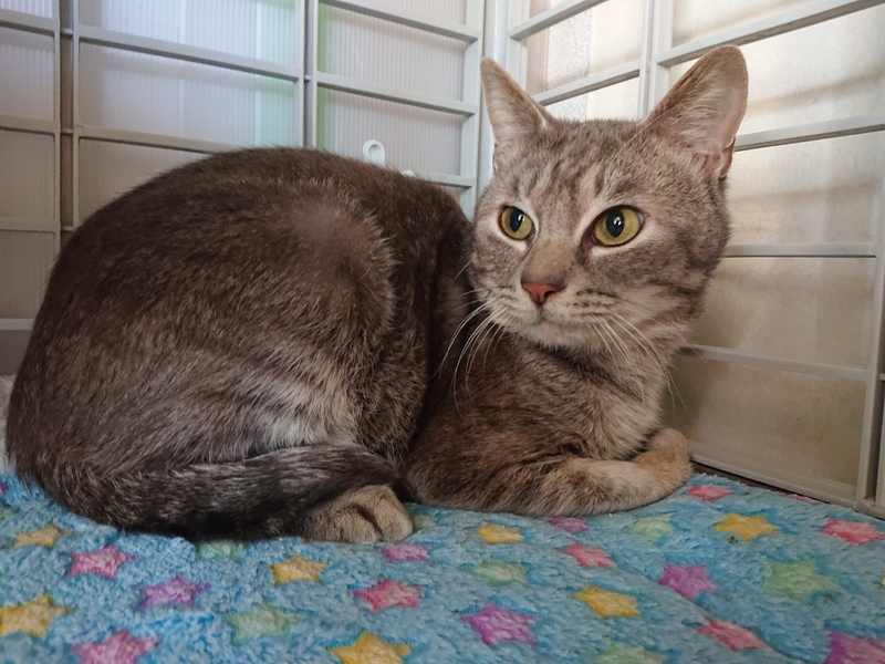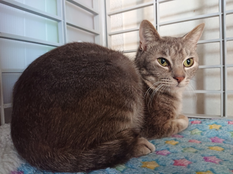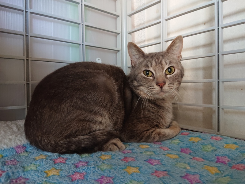 | 特徴(性格など) | 2018.11.11生まれ(推定) 毛色:サバトラ 淡いグレ-のシマ模様が美しいサバトラ男子♂ ピーンと立った大きな耳がキリリと男らしい!! 兄弟猫のオレオ♂と仲良しで、怖がりなオレオをいつも守ってくれるお兄ちゃんタイプ♪ とっても活発な男の子で、ケージの中や外側を上手に上へ下へと 登り降りするのが得意です。 元気いっぱいなトッポはとっても食いしん坊♪ 美味しいものの匂いがすると「ご飯早く~!」と言わんばかりに、 お皿の前でスタンバイしながら、こちらじ~っと見つめてくれる とってもカワイイ男の子です♡ |