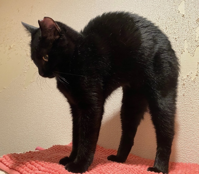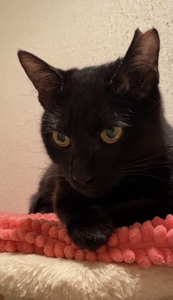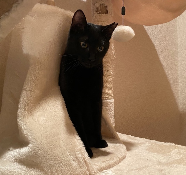 | 特徴(性格など) | 小柄な黒ネコの女の子で、尻尾は短くて丸いです。人見知りするかもしれませんが、慣れたらスリゴロで甘えん坊さん、人の膝が大好きです。 健康状態は良好、ウイルス検査陰性、ノミダニ駆虫・ワクチン接種・避妊手術済です。 |