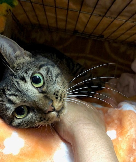 | 特徴(性格など) | 【猫の仮名】 みう 【毛色・柄】 キジトラ(担当者 桂) しっぽ長いです。 撫でられるのが大好きで、喉をゴロゴロさせるおっとりした甘えん坊です。 |
