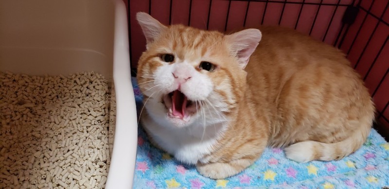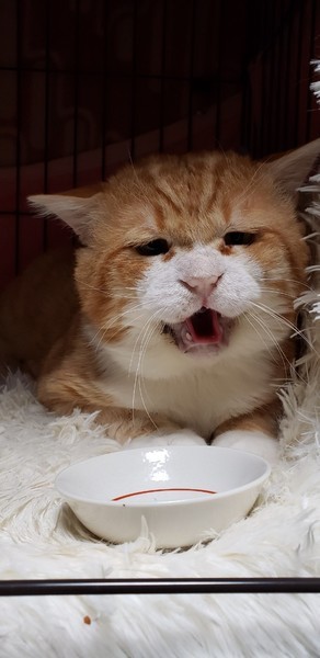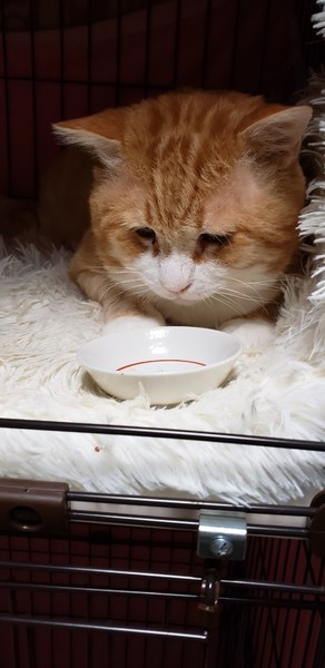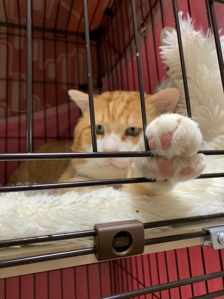 | 特徴(性格など) | 大きな茶トラ 手はクリームパン しっぽはキャンドルテイル 愛想はないがとにかく可愛い ☆不妊去勢手術済 ☆ワクチン済 ☆ノミダニ取り済 ☆駆虫済 ☆マイクロチップ挿入済 ☆トイレしつけ済 ☆ウイルス検査 エイズ(+)、白血病(-) |