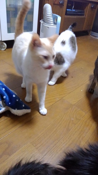| 特徴(性格など) | 黒ママ(写真右) 保護主女性には抱っこさせてくれます 落ち着いた性格 フォト左・息子クロや、画像2・娘サビと一緒に貰われたらベストです (母猫が一番ペット向きです) 画3・美しいスモウ茶白はハウスメイト 他の保護猫達もよろしく!!!! 色柄かぶってますが、全員別個体です |