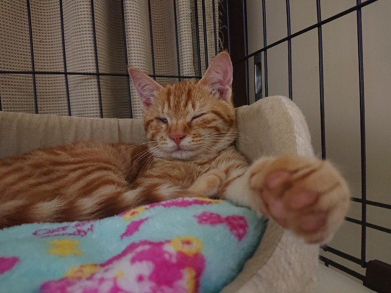 | 特徴(性格など) | 2020.9.15生まれ(推定) 毛色:茶色 スレンダーな体に、長くて真っすぐなしっぽの持ち主。 カワウソフェイスがかわいい茶トラ女子♡ 右目のハンデを感じさせない、とっても元気ですばしっこい女の子です。 抱っこよりは、一緒に遊びたいタイプの元気娘♪ ちょっぴり臆病さんで、初めての人にはシャーと ご挨拶してしまうこともありますが、 その後はゴロゴロスリスリしてくれます♡ |
