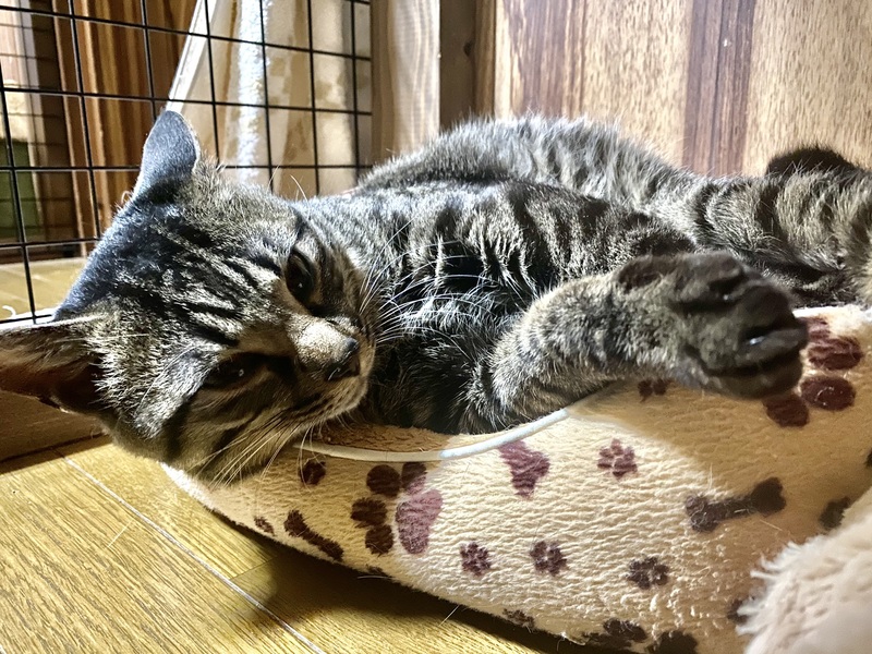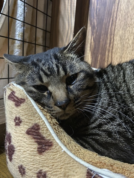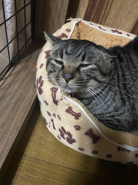 | 特徴(性格など) | 初めての環境に対しては緊張している様子でしたが、数日で慣れてくれました。 人に対してはゴロゴロと喉を鳴らして甘えてくれます。 ふわふわの毛布が好きで、いつも毛布でくつろいでいます。 |
