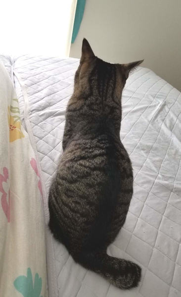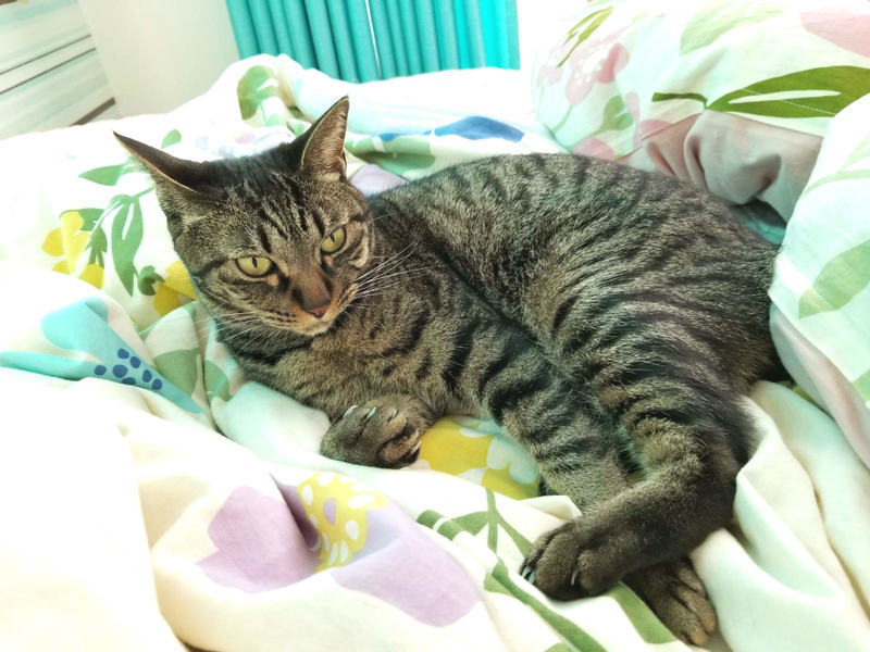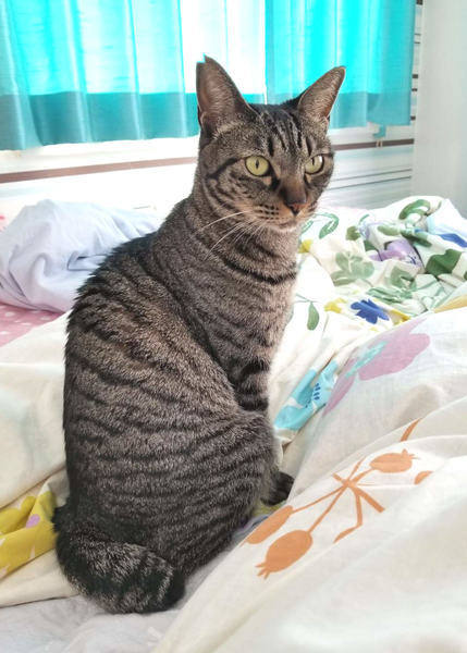 | 特徴(性格など) | キジ柄にアーモンド色の目をした女の子です。 尻尾がうさぎのように短いポンポン尻尾です。 性格はシャイなところもありますが天真爛漫で元気いっぱいです。 猫じゃらしに夢中になります。 フレンドリーなので、先住猫さんがいるお宅でも大丈夫です。 |