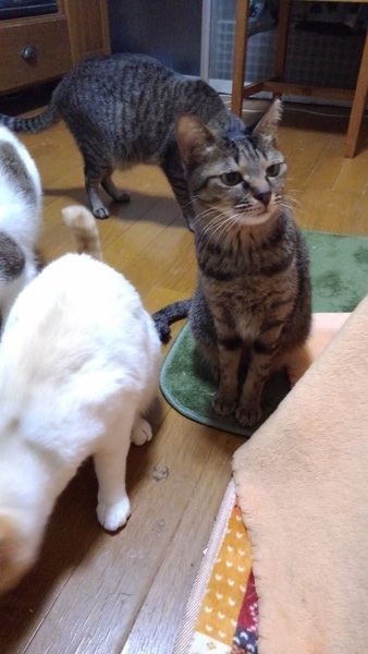 | 特徴(性格など) | (画像なし) ゴロゴロすりすり、ビギナー向きの可愛い性格(フォト2&6も。超オススメ!!!) 見た目も悪くありません 月齢不明 痩せていて、ひっかかれた傷跡も見られるため、できたらリリース避けたいです おとなしくて人懐こいので、野良に戻すの勿体ない&危険に思います 他の猫達もよろしく |