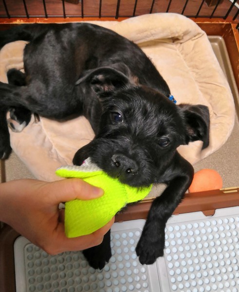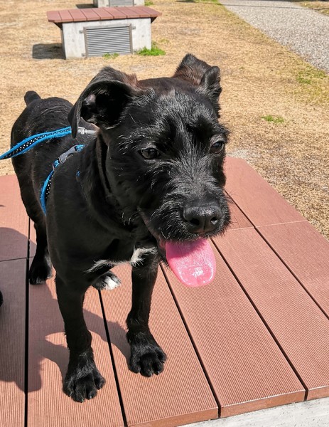 | 特徴(性格など) | ブラックにホワイトの模様があります 人懐っこい甘えん坊の男の子です。 現在9kgです。 おもちゃで遊ぶのが好きで「これで遊ぼう!」と誘ってきてくれます。散歩に出た時には、写真を撮るために後から歩いていると、ちゃんと来ているかどうか何度も振り向いて確認してくれます。無駄吠えはあまりなく、鳴かないよって言うと、言うことを聞こうとします。 お散歩も走るのも大好きです。 |