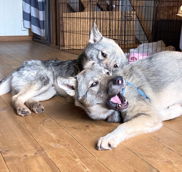 | 特徴(性格など) | 野犬の5兄弟の4男としてセンターに収容された子です。 元野犬ですが非常に人懐っこいです。 性格は明るくて天真爛漫、ほかの犬とじゃれて遊ぶのが大好きです。 人間も大好きで、ぺろぺろしたり「遊んで」とじゃれてきます。 食欲旺盛です。 5兄弟で育ったためか、食べるのが早いです。 トイレシートは数日で覚えましたが、まだ覚えたばかりなので失敗することもあります。 散歩は練習中です。現在は慣らしのため、ハーネスや首輪をつけたまま過ごしています。外では、新しい場所や大きな音がすると怖くてしゃがみ込むことがあります。 兄弟で遊んでいるときはうなったり吠えたりしています(しっぽを振りながら)。 食欲があるため、ご飯の用意をしているときは欲しがってクンクン言います。 おトイレが頻繁なのでおトイレできる状態にする必要があるかと思います。 フードおやつ共によく食べ元気です。 センターから出したばかりの時お腹を壊していましたが、整腸剤投与で治ってきました。 マイクロチップはこれから行います。 ・フロントラインスプレー済 ・混合ワクチン1回済 ・虫下し済 ・未去勢(里親様には、時期が来たら去勢を必ずお願いしております。) |