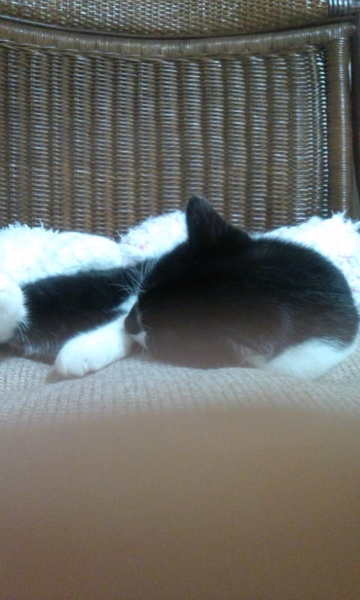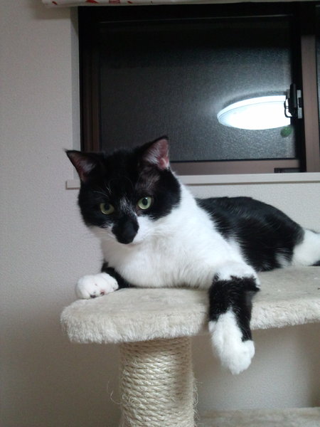 | 特徴(性格など) | 鼻がコアラで飼い主にべったりなつく白黒の猫です。 | ||