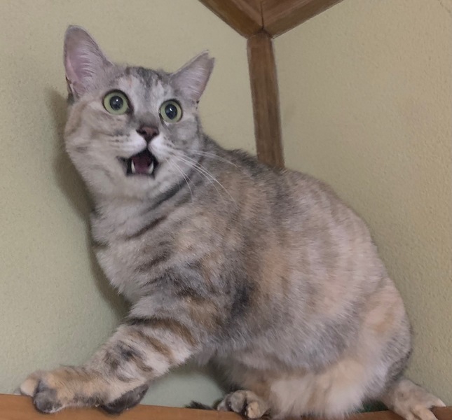 | 特徴(性格など) | 【仮名】ルピちゃん 【性格】グレーキジトラ系で中々の美人さんなルピちゃん♪ けっこうムッチムチでカワイイんです(笑) 保護主には馴れていて抱っこもOKなのに 写真を撮りに行ったらパニくった挙句に壁をよじ登り こんなビックリ顔の写真になりました(笑) 環境とヒトにさえ馴れてくれれば ルピちゃん的にはモーマンタイです(笑) 大事に一緒に過ごして頂ける里親様を大募集です♪ ※1ピキ譲渡可 |