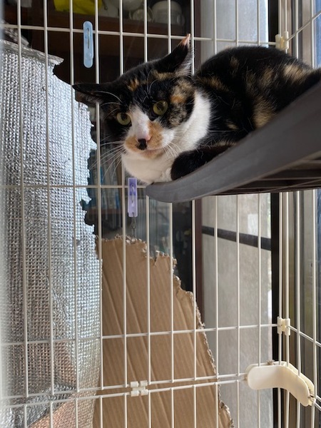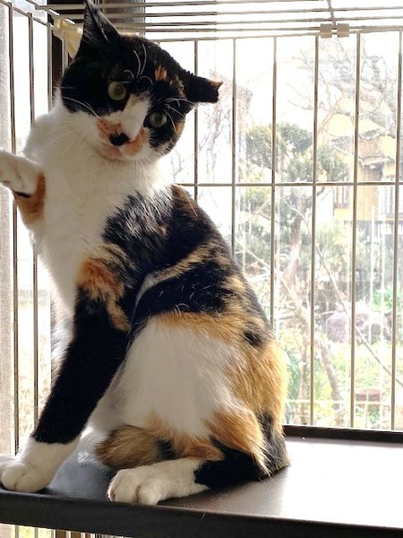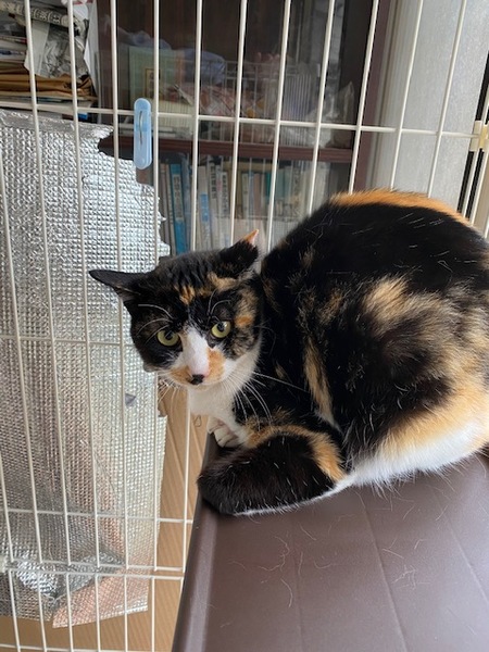 | 特徴(性格など) | 名前:ひめ 黒三毛の泥棒顔です。 保護した当時は興奮していて狂暴な所もありましたが随分と落ち着いてきましたので、里親様を募ることにしました。時間をかけて慣らして下さる方、ひめちゃんのペースで生活をさせて頂ける方を希望しています。 健康状態は良好です。 不妊手術済 3種混合ワクチン済 ウィルス検査:陰性 検便:陰性 蚤ダニ駆虫済 腸内寄生虫駆虫済 食欲旺盛でとっても元気です。 |