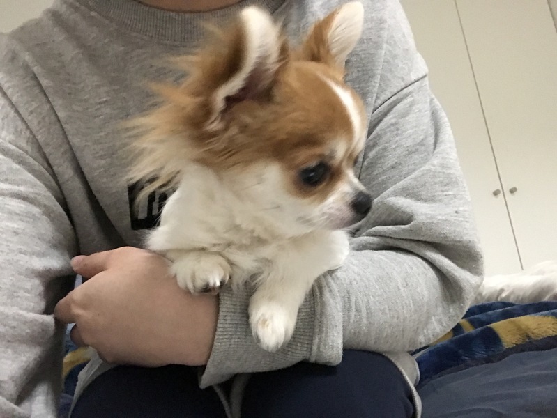 | 特徴(性格など) | 茶色と白のパーティーカラーです。 甘えん坊な性格で一緒に寝たがります! くっつくの大好きです! 無駄吠えが少なく、人見知りをしないので噛み付く事はありません。 |
