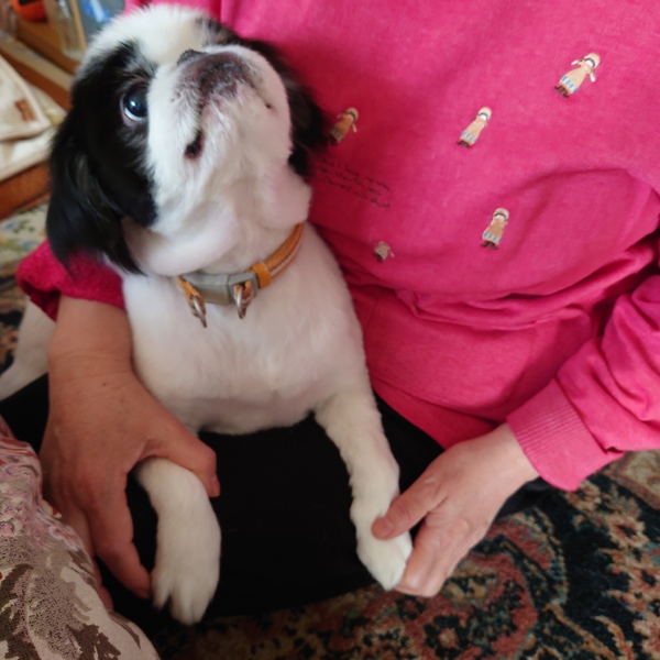 | 特徴(性格など) | 白黒で可愛らしい血統書付きの狆(ちん)で、ちょっとぽっちゃりしていますが今のところ健康で育っています。 特徴として芸はできませんが、とにかく人懐っこいワンコでおとなしい性格です。 |