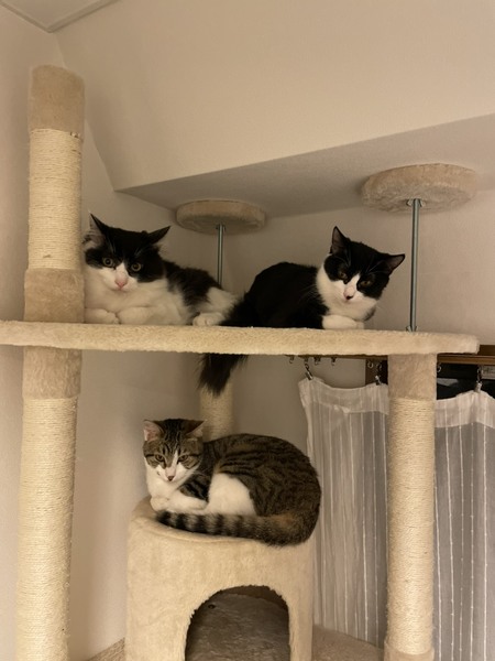 | 里親募集する理由 | 当会スタッフ宅近所のTNRで、交通量も多く、決まったご飯ももらえない場所だったため保護。 3兄弟の内1匹は里親が決まりましたが、臆病で人慣れがイマイチな2匹が残りました。 現在はシェルターでは無くスタッフ宅で人慣れ修行中です。 当会では既に保護猫でいっぱいなのと、老猫の看取りが多いため 若くて元気なこの子達に里親を募集したいと思います。 |