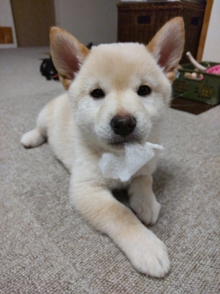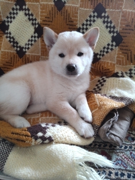 | 特徴(性格など) | 柴犬の子犬です。 白でしたが、どんどん茶色っぽくなってきました。 少しさみしげな表情がたまらなく可愛いです。 他の子に比べると少しおっとりさんですが、柴犬ですので噛み噛みはすごいです。 |
