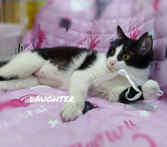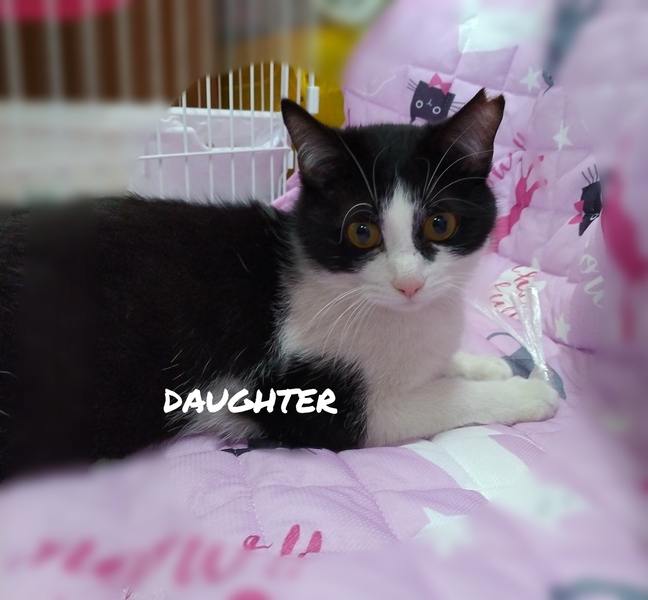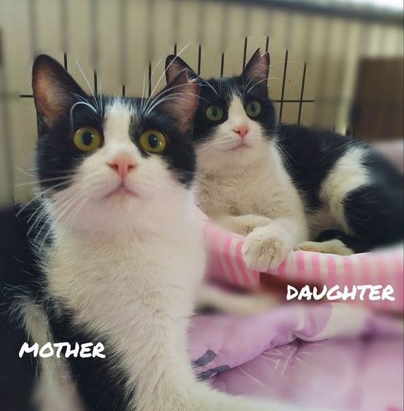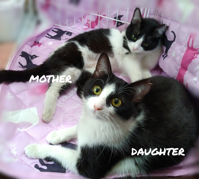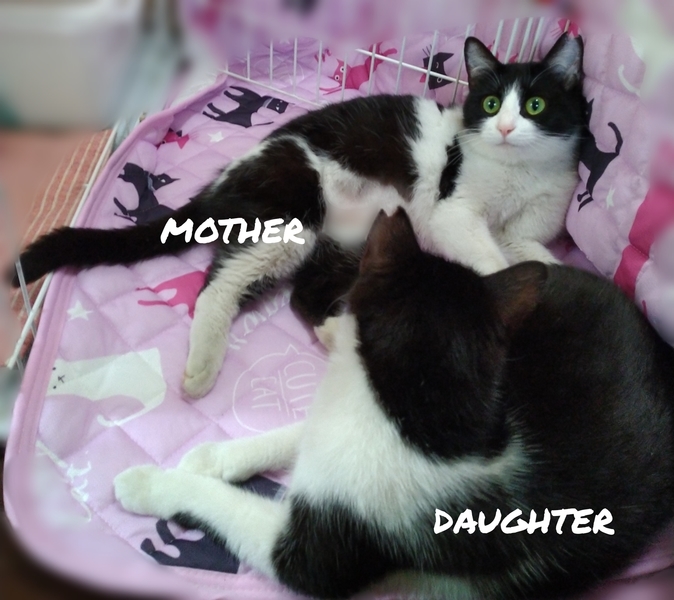 | 特徴(性格など) | とても仲良しハチワレ親子です。 2匹とも抱っこで捕獲できた程の人慣れで初対面の保護宅さんにも初日から抵抗なく抱っこされました♪ とても扱いやすい良い子達なので猫を飼うのが初めてという方にもスムーズに馴染むと思います。 2匹一緒のご縁を希望しております。 お留守番も出来ます。 母猫…推定2歳 4kg 娘猫…推定8ヶ月 3.5kg ◆食欲旺盛・健康状態良好 ◆避妊手術済 ※術後の貧血なし ◆エイズ白血病ともに陰性 ◆駆虫済(フロントライン+・駆虫剤服用) ◆3種ワクチン接種済 |