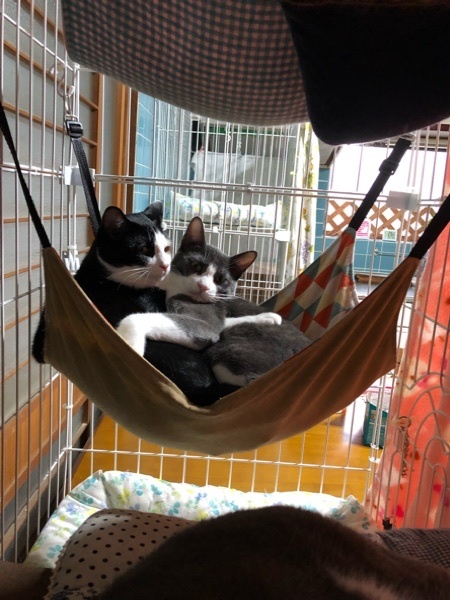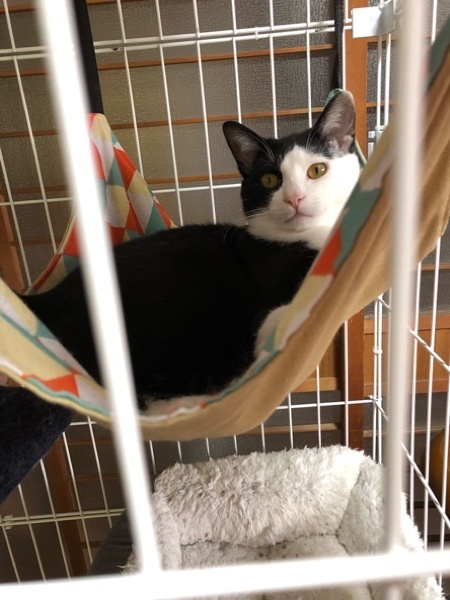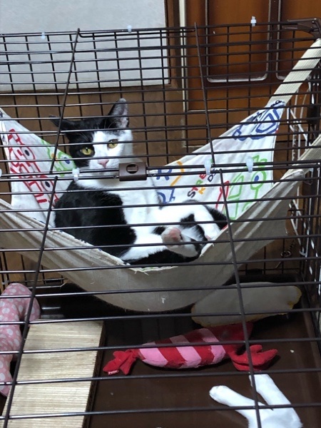 | 特徴(性格など) | 〇仮名:まさむね(♂) 〇毛色:白黒(ハチワレ) 〇検査・ワクチン 三種混合ワクチン:初年度2回接種済み 今年度は2月に接種予定です エイズ・血病ウイルスチェック: 2回実施済みエイズ・白血病共に陰性 ブロードライン:2回塗布済み 回虫駆除:済み 去勢手術: 実施済み 〇性格・チャームポイント 仲良し3兄弟です。 3兄弟の中では一番ビビりで大人しく慎重です。 いつもけんしん、のぶながとくっついていて、ニャンモックにもふたりで乗ります。 ふたりのどちらかと一緒のご縁を希望します。 |