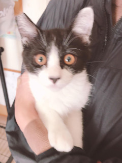 | 特徴(性格など) | 仮名を『ぶんちゃん』と言います。 白黒トムキャットの男の仔。 車のボンネットに、入り込んでいるところを保護されました。 元気いっぱいやんちゃです! 他猫とも仲良しで、同居の『まりも』との猫団子はしばし目撃します。 写真のきじとらの仔は『まりも』です。 先住猫さんが居ても、仲良くなれそうな気がします。 可愛いぶんちゃんに会いに来てくださいね! お見合い場所は埼玉県志木市になります。 【医療処置情報】これから実施のも含まれます *健康チェック *3種混合ワクチン接種 (年1回定期的にしております。詳細はお見合い時にお知らせいたします) *ウイルス検査実施(FIV.FeLV共に陰性) *検便実施 *駆虫薬投与(レボリューション、ドロンタール) *マイクロチップ装着 *不妊・去勢手術 |