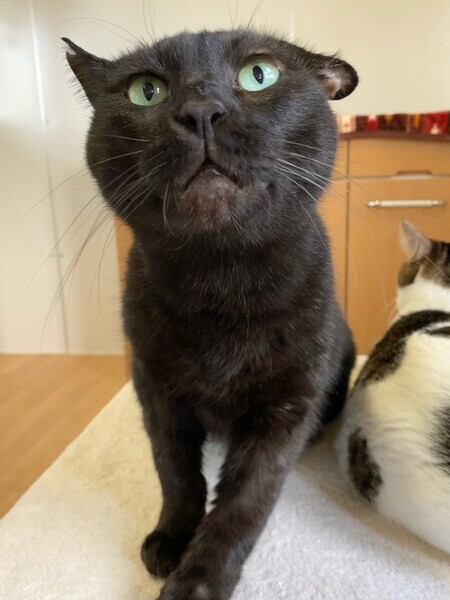 | 特徴(性格など) | 物静かでおっとり♪な「黒」ちゃん❤ 自分からスリスリ甘えることできないけど、ナデナデ大好き❤ 性格男前なデリケート男子です♪ 片耳、耳血腫後遺症で少し収縮ありますが、現在、問題なく元気に過ごしています。 現在、ドライフードを置き餌として栄養補給、水分補給のため一日2回パウチを与えています。 <推定誕生日:2016/夏> |
