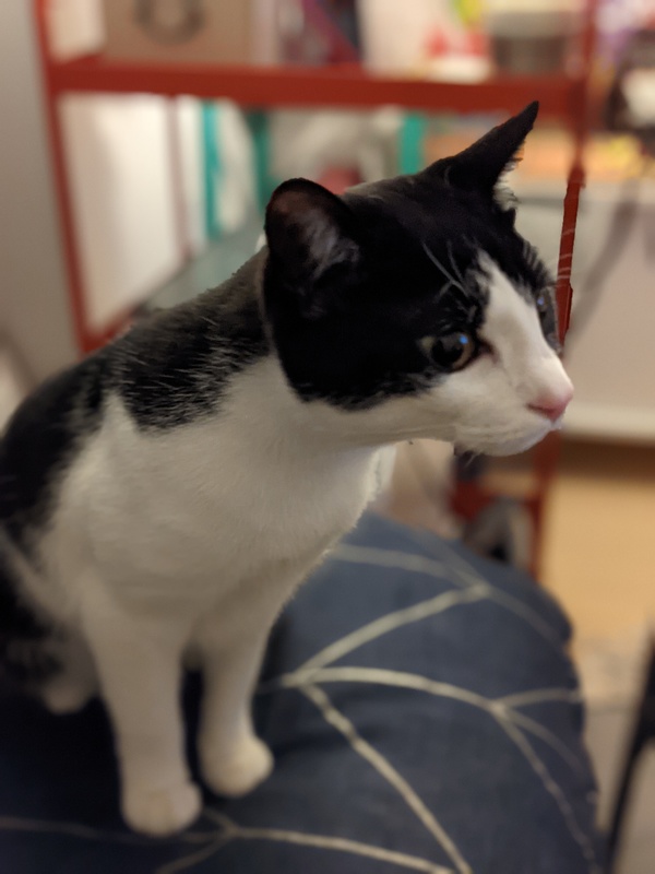 | 特徴(性格など) | 白黒のハチワレ猫ちゃんで普段は大人しいですが、遊んでほしいときはいたずらっぽい顔をしながら甘えてきます。 なれるととっても人懐っこいのでテレワーク中の方や子どもたちと遊んでくれる方にオススメです。 |