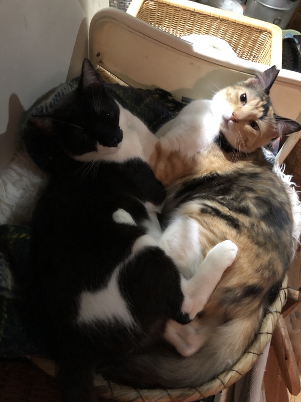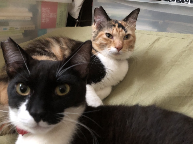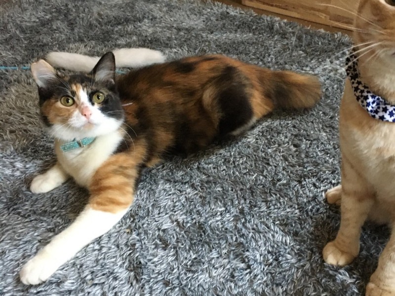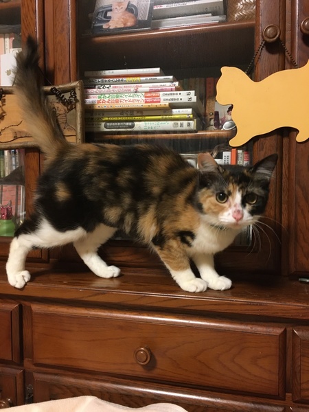 | 特徴(性格など) | 三毛2匹は、尻尾など、部分的に長毛、黒白はオス、3匹甘えん坊 遊び好き 人間と一緒に寝たがります。 |