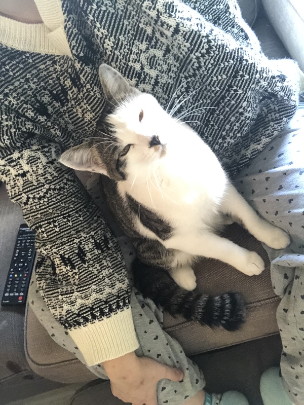 | 特徴(性格など) | 色はハチワレです 性格は温厚、甘えん坊で我が家にいる先住猫と上手くやっています、人やが好きで子供相手でも平気そうです |