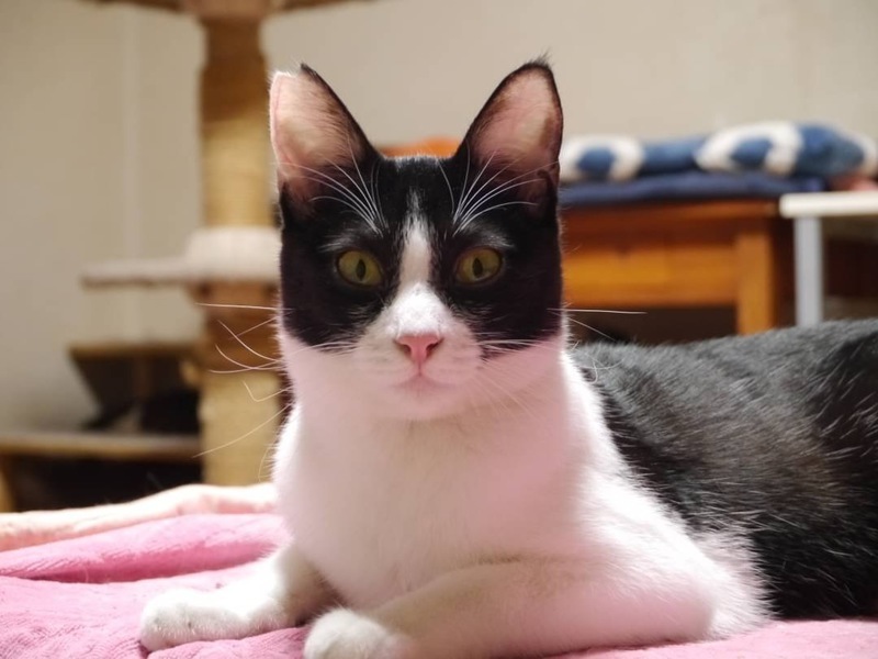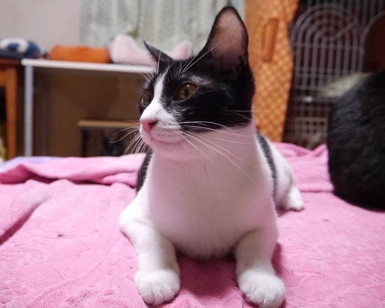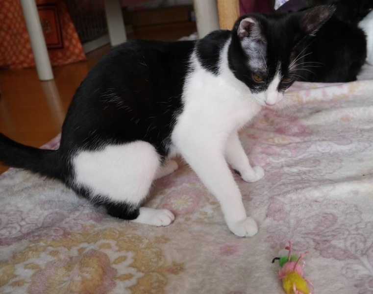 | 特徴(性格など) | 綺麗なハチワレに、シャープな顔立ち女の子です。 小柄ですばしっこくて、遊び好きの まだまだ子猫の要素たっぷりです。 自分から甘えてくるようなデレデレタイプではありませんが、触って撫でてもらうのが好き、抱っこも好きな女の子です♡ |