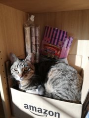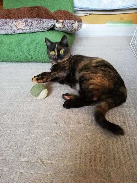 | 特徴(性格など) | とても元気です。 保護時は人を怖がったり、 他の猫を怖がったりしたことは一度もありませんでした。 1度、面会のため他のお宅にお邪魔しましたが、 慣れない場所で縮こまり、逃げ出そうとしたり、暖房の裏に隠れてしまったりしました。 慣れてしまえば、また元の愛くるしい性格に戻ると思います。 我が家では、転がるおもちゃを使って一人で遊んだり、 我が家の飼い猫と追い掛けっこしたり、 高いところに登ってみたり…かなり活発です。 走り回るのが大好きな猫ちゃんとは 相性が良さそうです。 月齢的にもまだ子猫で、何にでも興味を示し、 何でもおもちゃにしてしまいます。 キーホルダー、アクセサリー、安全ピン・・ 誤飲する可能性もありますので、危険なものは遠ざけて下さい。 小さい頃からキャットフードで育てられたのか、 今のところ人間の食べ物に興味を示しません。 ドライフードは3種類しか食べさせたことありませんが、 今のところ好き嫌いなく食べています。 ウェットフードでチキンのものはあまり好みではないようです。 ちゅーるのようなものは、おねだりするほど大好きです。 投薬時、錠剤は砕いてちゅーるに混ぜて与えています。 教えなくても猫トイレ使ってます。 他の猫とトイレの共有できます。 粗相したことありません。 保護時(推定:生後5ヶ月)の体重は1.8キロくらいでしたが、 生後9ヶ月を過ぎ今は3.9キロに成長しました。 1歳までに4キロ超えるかも・・? |