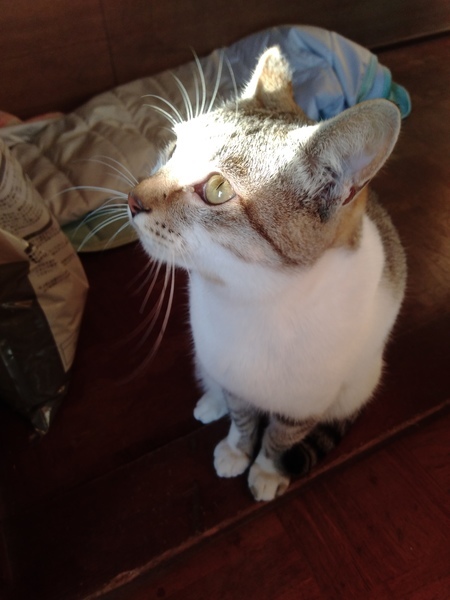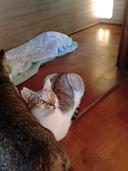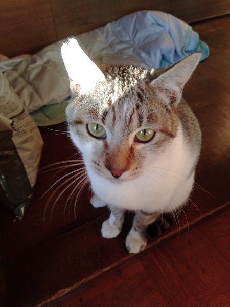 | 特徴(性格など) | 最初は慎重で、おとなしく、クールな感じでしたが、今や甘えん坊さんに大変身しました。 たまにくる親戚にも抱っこさせます。小さい子供にも撫でさせるくらい人になついています(初めは警戒しますが、すぐに慣れます) 去勢手術の際病院に一泊したのですが、次の日には看護婦さんにも触らせてくれたそうです。 他の兄弟猫を引き取ってくださった方にも抱っこさせました。 現在は空き家にて面倒を見ているのですが、空き家においてあるベッドに抱っこしながら横になると一緒にそのまま寝てくれます。 爪もおとなしく切らせてくれます。 |