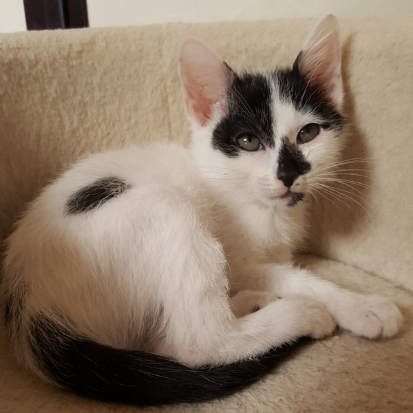 | 特徴(性格など) | 仮名を プーマちゃんと言います。 とても人懐っこく、可愛い子です。 預かり宅では膝にすぐ乗ってきます。 アディダス君、ミズノ君、プーマちゃんは兄妹です。 まだ幼いので兄妹で迎えて頂けると嬉しいです。 |
