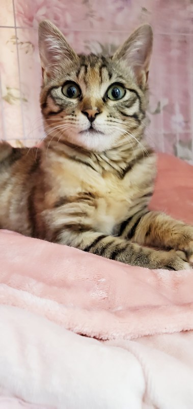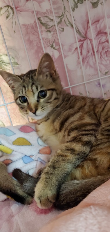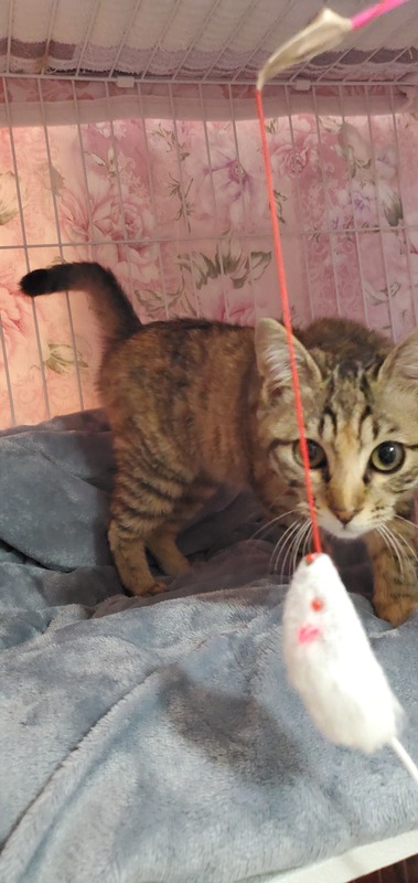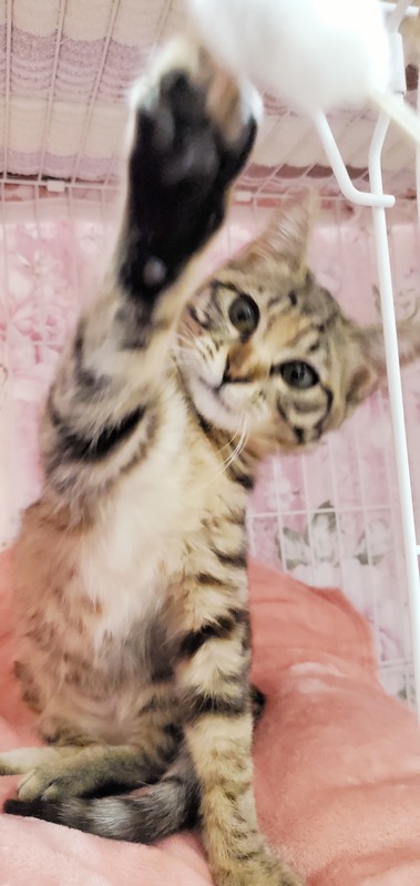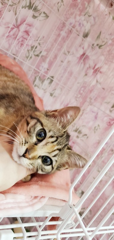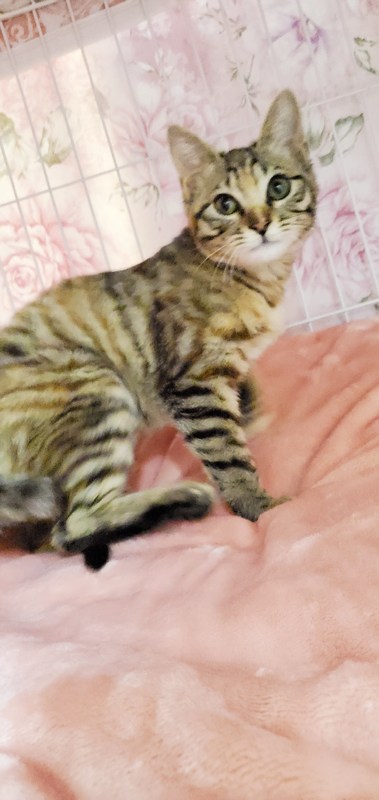 | 特徴(性格など) | 色柄は、キジトラ模様に、きれいなオレンジ色のむぎわら色がはいっています。 少々、怖がりなところもありますが、とても活発な女の子です。 人慣れトレーニング中ですが、とても慣れてきていて、触られると、ゴロゴロ言います。 そのうえ、鼻キッスもしてくれます。 お顔立ちは、THE.女子!という感じで、チャーミングな女の子です。 ただいま、抱っこの練習中!です。 遊ぶのが、大好きで、たくさんの保護猫さんの中の一人として、追いかけごっこをしたり、ものおじせずに、トコトコと寄っていっては、お尻の匂いをかいでます。 猫が大好きですので、先住猫さんが、おられるお家でも、大丈夫かと思います。 一緒に遊んでもらえるお友達がおられると、嬉しく思います。 おトイレは、きちんと猫砂でします。 |