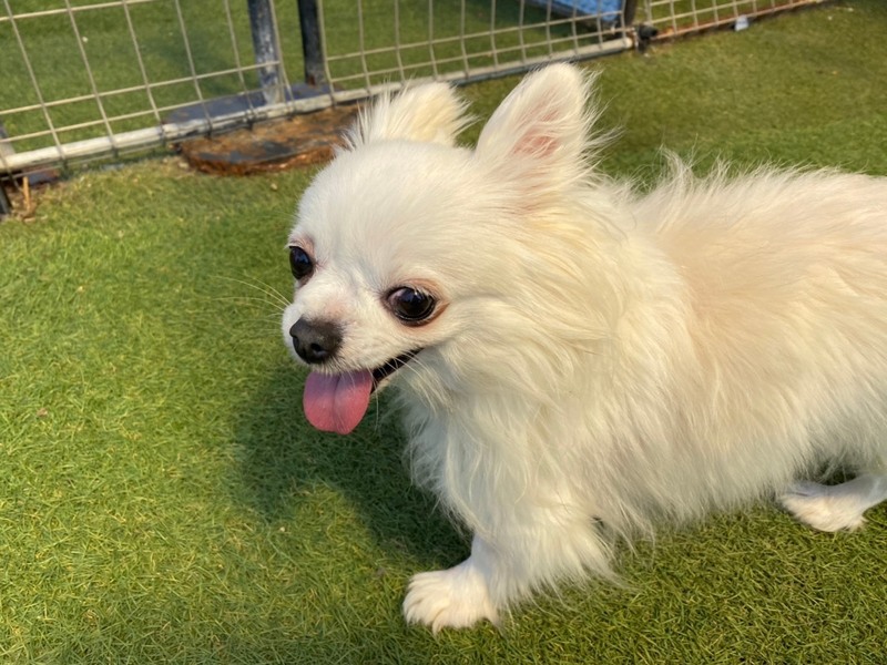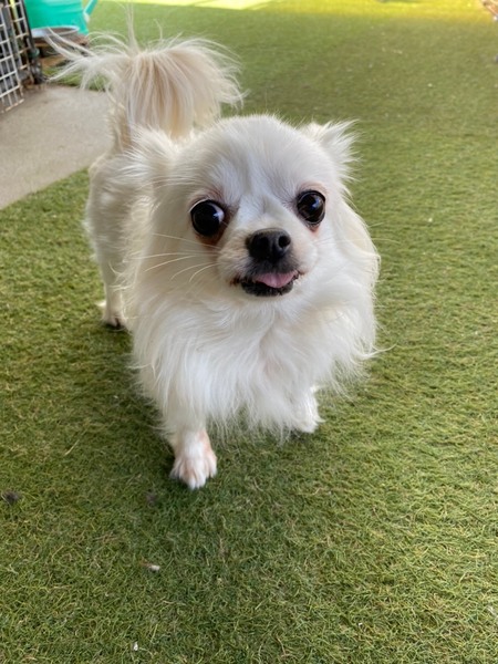 | 特徴(性格など) | チワワ 女の子 推定5~6歳 体重4キロ まん丸なピーチちゃん。 尻尾フリフリしながら甘えてくる姿がとても可愛い女の子です。 他のワンちゃん達とも、仲良く遊べます。 |