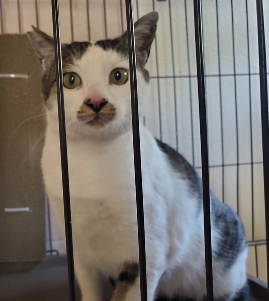| 特徴(性格など) | 口元の模様がとても可愛いキジシロの男の子です パーキングエリアに置き去りにされたようです 車にはねられたため保護しました 幸いレントゲンやエコー、血液検査をしていただきましたが 打撲だけだったようで 今は元気にしています 怖がりですが慣れると甘えん坊さんです ご飯の要求をする時はよく鳴いていたそうです |