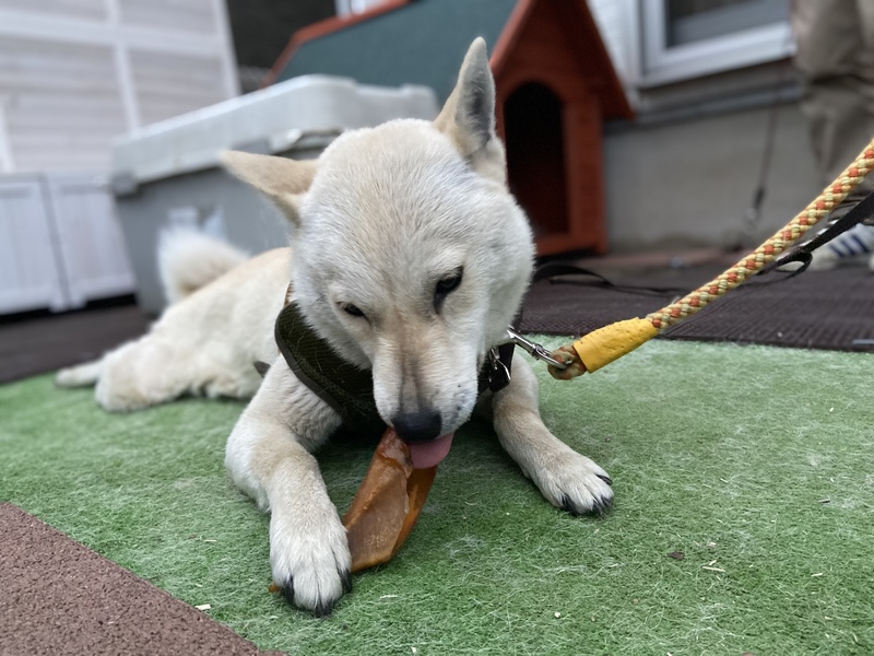 | 特徴(性格など) | 【健康状態】 良好 便検 ・異常なし 血液検査・異常なし フィラリア・(-) 避妊手術・済 マイクロチップ・装着済 狂犬病・前回2020.7 混合ワクチン・前回2020.4 つぶらな瞳が可愛い北海道犬(血統書確認済)で、白~薄茶色の女の子です。 2019年11月生まれ、13キロです。 過酷な生活の中人間不信にもならず、撫でられたり触れ合ったり人からの愛情や温も りを求めている健気な子です。 基本的には人懐こく人の存在をそばで感じていたい子ですが、日本犬ですので知識と 注意は必要です。 経験不足の為、ちょっと臆病な一面もあると思います。 初めての人にもクンクン出来、何回かコミュニケーションを取れば仲良くなれ、ゴロ ンとお腹を見せて甘えてくれます。 ブラッシングや家庭でのシャンプーは気持ち良さそうにしており、触られて嫌がる所 はありません。手足やお尻も拭けます。 フード皿は執着し守りますが、お座り、お手も出来ますし、おやつも手から上手に食 べれます。 トイレは完全外派です。お散歩が大好きで道路は端を歩けます。 広場では楽しくて時々引きが強くやんちゃになりますが、日々学習し落ち着いてきて います。 預かり家では3月現在、昼は外、夜は廊下のケージでの生活です。 留守番時や就寝時はケージ内で落ち着いて過ごせます。 外に繋いでいると家を守る気持ちがある様で、訪問者や車に吠える事もあります。 室内フリーにされる場合は里親様宅での学習をお願い致します。(暑さ対策は必須で す。) 飼育経験の浅いただの犬好きの主婦が手探りでお世話をし預かっています。 今後トレーナーさんとのセッションも予定しています。 運良くまだ1歳という若さで保護出来た事を、次の段階へと繋げたいと切に願ってい ます。 今迄の経験不足な事を踏まえ落ち着くまでは留守番が少なく、日本犬の知識、お散歩 を充分に出来る体力・時間があり、 この子の成長を支え共に歩み一生責任を持って家庭犬として可愛がって下さるご家族 様をお待ちしています。 |
