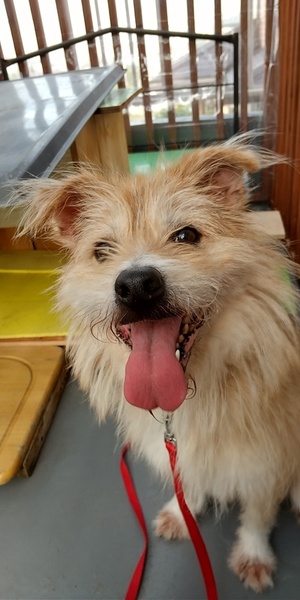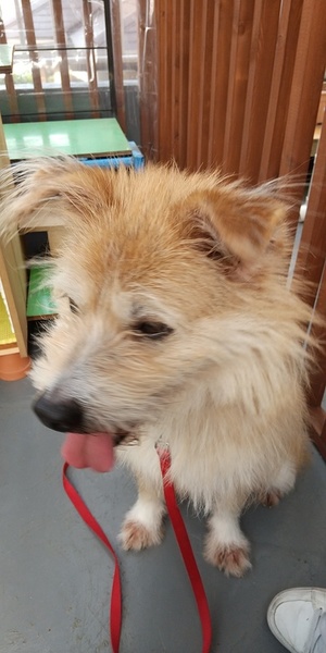 | 特徴(性格など) | 薄い茶色のかわいい女の子 とってもフレンドリーで、人が大好きな甘えん坊 すごく元気で実際の年齢はわからないのが現状です。 お散歩など嬉しすぎて、引っ張り癖もあり、今トレーニングしています。 |