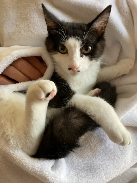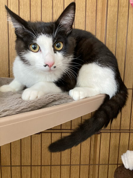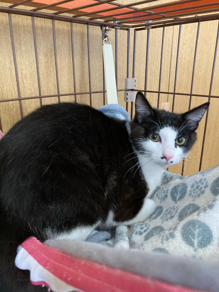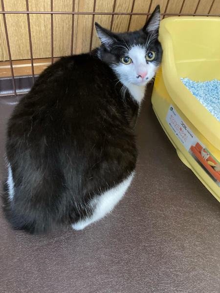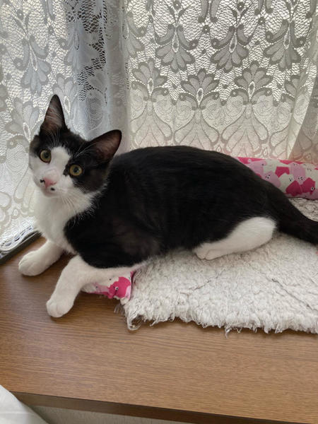 | 特徴(性格など) | こんちゃー=^_^= ボクちんはムックくんでしゅ ずんぐりむっくりの体型をしていたからムックくんって呼ばれるようににゃったよ! でも、もうボクちんも立派な大人の男ににゃったんだぞ! だからもう短足にゃんて言わせにゃいぞ! 遊ぶのが大好きだからいつも年上のお姉にゃんやお兄にゃん達に遊んで貰ってるにゃ ボクちん年上の猫さん好きかもしれにゃいな 抱っこすると固まっちゃうし、ヘタレなボクちんだけど、ちょー甘えん坊だからうーんと甘えられる家族を待ってるにゃ よろちくお願いしまーすにゃ YouTubeちゅー猫チャンネルをご参照ください https://youtu.be/OiQRvTaEQio ---------------------------------------------------------------------- 手足の短いずんぐりむっくりのムックくんと呼ばれていました。 黒白のオスくんで生後半年ぐらいのまだ子猫です。 保護した経緯は、ある日突然ふらっと餌場にやって来た所を保護しました。 保護した時はまだ3ヶ月ぐらいだったので、まるでぬいぐるみのようでした。手足が短くモフモフで猫とは思えない感じでした。そんな様子はYouTubeのちゅー猫チャンネルにアップされておりますので、ぜひ!ご覧ください。 保護した時の様子はこちらhttps://youtu.be/0XLf2WhgDqg コロナ禍の中、なかなか譲渡会が開催できない間にすっかり成長し、猫らしい体型になってきました。 去勢手術も終わっているので、お仕事をお持ちのご家庭でも全く問題ありません。 ヘタレんちょですが、慣れたらいつまでも抱っこされていたい程の甘えん坊さんです。 まだまだ遊びたい盛りなので、毎日オモチャで駆けずり回って遊んでます。 他の猫との関係性も特に問題ありませんが、遊んでくれる先住猫さんがいると良いと思います。 とにかく甘えん坊なので、迎えてくださるご家族の方は可愛くて仕方ないと思います。 ぜひ!よろしくお願いします。 |