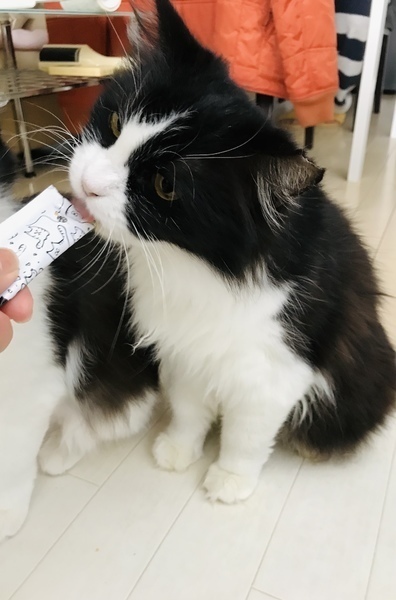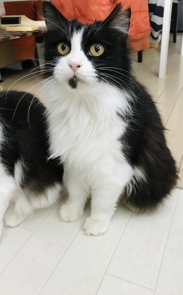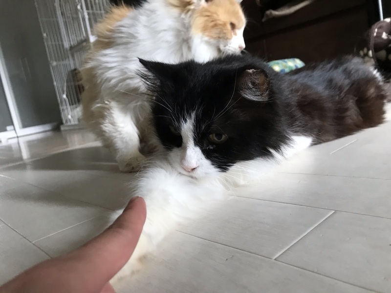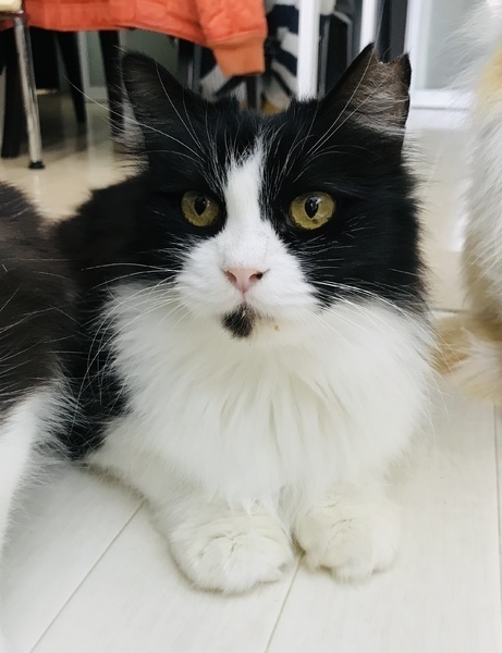 | 特徴(性格など) | ハチワレの長毛猫ちゃんです。一緒に預かっている猫のお母さんだと思われ、母性本能が強く、他の猫みんなを舐めて可愛がってくれる、とっても優しい子です。人にはまだ距離がありますが少しずつ距離を縮めていって頂けたらと思います。 エイズキャリアですが、ストレスなく暮らしていれば、長生き出来る事も少なくありません。 |