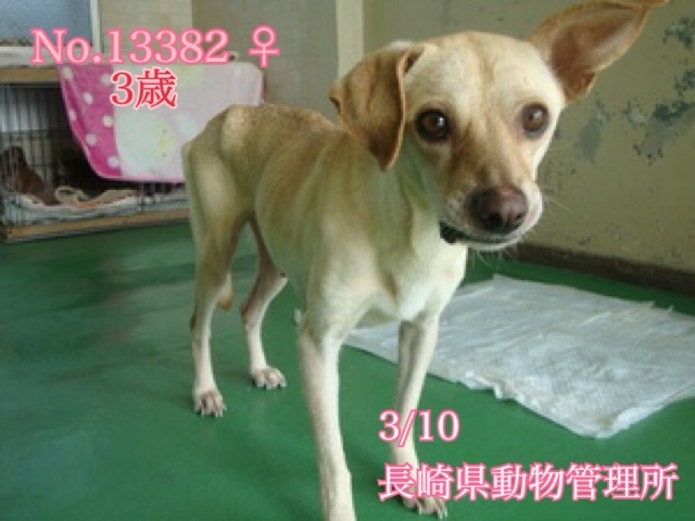 | 里親募集する理由 | 小柄な中型雑種、子育てを終えた3歳の可愛い臆病な女の子です。ガリガリに痩せています。 長崎県内にて住民により生まれた仔犬3匹と一緒に保健所へ持ち込まれ3/10(水)に長崎県動物管理所へ移送されてきました。 突然連れて来られて収容され、どんなに寂しく心細いか。一日も早く一般の温かい家庭の中で過ごさせてあげたいです。(仔犬達は譲渡されました) 大人しく人馴れはしていて怖がりさんな女の子が寂しく助けを待っています! ⭐️県外、遠方の方でも譲渡の条件が合い、良縁に恵まれましたら里親になっていただけますのでどうぞ宜しくお願い致します! ※募集内容を熟読し、必ずご家族とよく相談をされた上、ご家族全員の賛同を得られてからのお問い合わせ をお願い申し上げます。 ⭐️外飼いでは無く、室内飼育で家族の一員として迎えて下さる方、「引き渡し方法」のところにあります【アンケート】にご回答と共にお問い合わせをいただけますよう、お願い申し上げますm(_ _)m 可哀想に非常に痩せて爪も伸びています( ; ; )必死に仔犬を守りながら寒さや空腹、雨風にも苦しんできたことでしょう。 それから保健所に、その後は管理所に移送されてきてずっと不安で寂しいと思います。。 でもそんな辛い状況のままでいたより良かったと考え、この子に幸せを、温かい本当の本物の家族を見つけたいと願っております⭐︎⭐︎ 現在の体重は見た目の推定になりますが大体10キロ未満位でしょうか。。 普通に飼育されていた犬では無く、野良状態のまま餌だけ与え放し飼いだった為、首輪やリードでのお散歩の経験はおろか撫でられたり触れ合ったり、人からの当たり前の愛情を知らない子です( ; ; )可愛がってもらっていなかったようなので撫で撫でされる事に慣れておらず触らせてくれますが嬉しくなさそう、逃げちゃいます。(写真の首輪は管理所でつけた物です) お座りやマテなども知らないようです。 リードも怖いようで嫌がっていました。3/29から短いリードを付けて練習を始め、徐々に慣れてきたのでこれからお外での練習も開始していきますฅ•ﻌ•ฅ 人馴れはしている様子で尻尾を振って寄ってきてくれたり、手からおやつも食べてくれて(でも食べたら直ぐに逃げちゃいます^^; )仔犬を触っても心配そうでしたが怒ったりしませんでした。 見知らぬ人には吠えていますが人が居ないと吠えていません。 優しい職員さん方が怖くないよ、今度こそは幸せになれます様にと毎日触れ合いながら、根気強く一生懸命にお世話してくださっています。 リードを付けた経験が無く怖がっていましたし授乳中だったのでお散歩の練習もまだ、引きの強さもどの程度か分かりません、人や新しい環境に慣れるまではまだしばらく時間を要すると思われます。 ビックリして怖がって逃げよう逃げようとする可能性も大いにある事だと思いますし、急な走り出しや高い塀や壁、柵の飛び越えや首を振って後退りからの首輪抜け、胴輪抜けにもご用心で、どんな子であっても慎重に、脱走、逃走には充分な注意と配慮が必要ですm(_ _)m 適切に制御し、躾や朝晩のお散歩、運動の時間をしっかり取ることの出来る、沢山優しく触れ合って頂ける方、 先ずは室内でじっくりと時間を費やし触れ合い、ゆっくりと信頼関係を作っていく事の出来るご家庭を希望しております。 ※お散歩デビューはしばらく先になってしまうかもしれませんm(_ _)m 人間が焦らずにゆっくり長い目で見守りながら、愛情を持って接すればこの子もきっといつか新しい家庭に馴染んでいけるのでは、と思い祈っています。 辛かった過去がある事も踏まえ、人は怖くないんだよと、人を信じてくれる様に、例え長期戦でも広い心でドンとこい^_^と仰って頂ける方、この子を尻尾フリフリ♪ニコニコの笑顔にしてくださる方、いらっしゃいませんか? どうぞ宜しくお願い申し上げますm(_ _)m ⭐️必ず室内飼育で、譲渡後には速やかな病院受診・健康診断(血液検査、尿便検査、ノミダニ・フィラリア予防やシャンプー等)避妊手術、混合ワクチンをする事が可能な、なるべくお留守番が少ない、沢山優しくスキンシップやコミュニケーションで触れ合っていただけるご家庭。 ⭐️室内でのトイレの躾も1からとなります。 只今ペットシートでの排泄練習中、 当分の間は何かと手がかかり大変だと思いますが覚悟と根気・理解で受け入れて下さる方。 ※譲渡後にはお早めの避妊手術、その際に歯石が有れば除去も一緒にお願いしますm(_ _)m ⭐️出来れば中型〜大型犬の飼育経験があり愛情を持って接することが出来る方、朝晩のお散歩や運動、スキンシップやコミュニケーションに充分時間をあてられる方、なかなかお散歩が出来ない時などには、引きこもりにならぬようトレーニング教室なども視野に入れて考えてくださる方。 何卒宜しくお願い致します。 ※混合ワクチン、狂犬病予防接種、フィラリア予防実績は有りません。 フィラリア陽