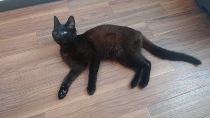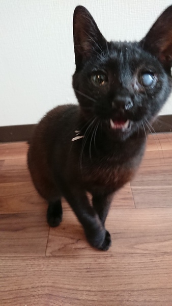 | 特徴(性格など) | ◎FIV/FeLV 陰性 ◎予防接種 1回目済 ◎ブロードライン駆虫済 ●2021年1月中旬生まれ(推定)、とにかく元気で超甘えん坊。猫にも甘えん坊です! 運動のためにケージから出すと、ずっとゴロゴロいいながら走り回って遊んでいます。 3/29 生後2ヵ月半で体重2.1kgです。 4/16 月齢3ヵ月で体重2.4Kgです。 ●声変わりし始め、強気な幼な声です! ●顔が小さくて痩せ型、手足はスラッと長いモデル体型、手足が小さいので、余り大きくならないかも? 尻尾も長くて真っ直ぐで、とてもキレイです。 ●毛色は黒がベースで、お腹辺りから尻尾にかけて茶と黒のぼかしになっていて、抹茶茶碗のようです。 ●朝は小粒カリカリ、夜は小粒カリカリとパウチや獣鳥魚肉をあげています。 ●猫見知りしません。(自分を子猫だと思っていたウチの子が懐かれて、かなり困っていました) ◎暖かくなってきたこととワクチンの効果で、風邪も良くなりました。(写真の目許は眼軟膏で汚れています) ◎右目はキレイです。 ◎左目は生後間もなくひいた風邪がもとで、角膜が三日月のように白くなっていますが、視力はあります。今は目やにもありません。 最初は違和感があるかもしれませんが、ウニャウニャお喋りしながら飛び跳ねている姿をみていると、アッという間に忘れてしまいます。本猫も痛みも痒みもなく、気にする素振りもありません。 |