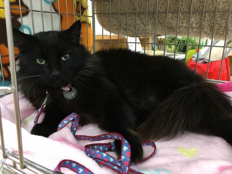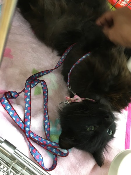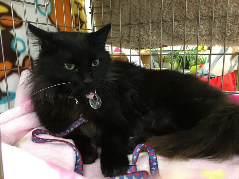 | 特徴(性格など) | とても人懐っこい黒猫くんです。 黒の長毛で尻尾もフサフサです。 目の色はグリーンです。 ヒゲの一本だけが白いです。 歯が綺麗なのでまだ若く一歳ぐらいのようです。 人が大好きで構って欲しい子です。 |