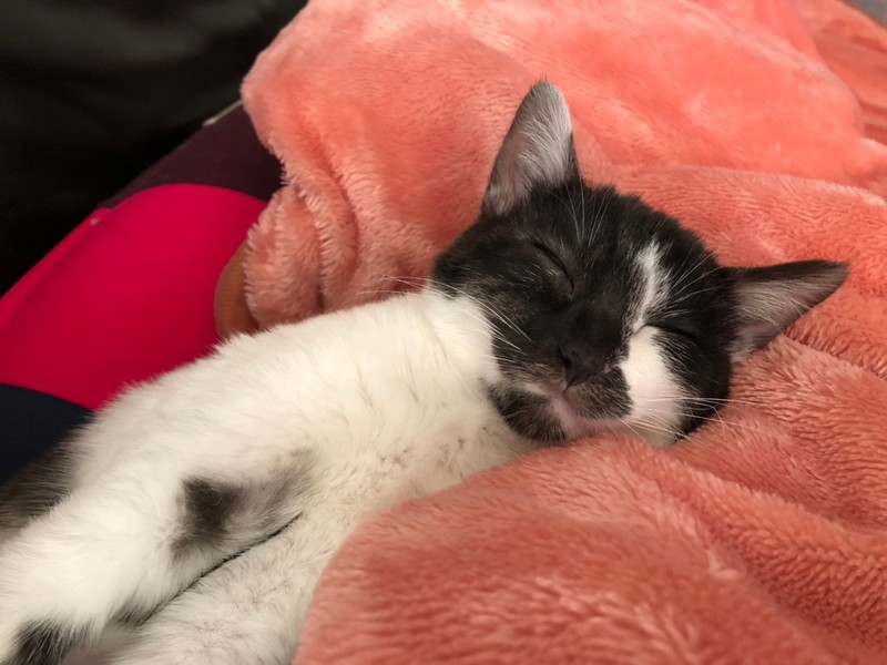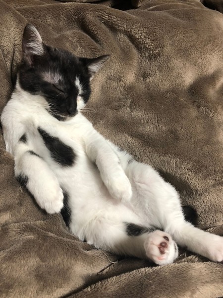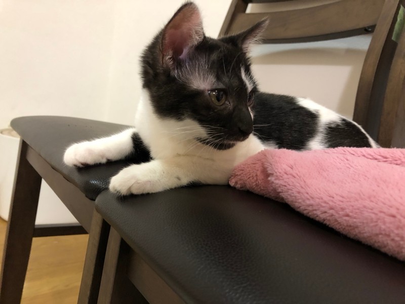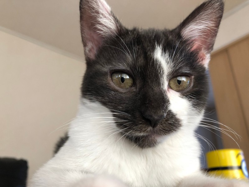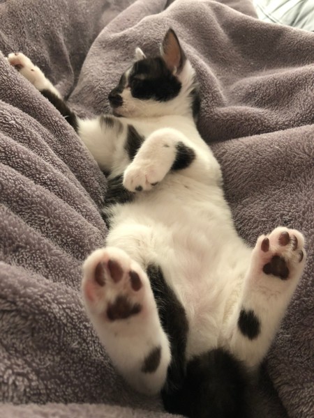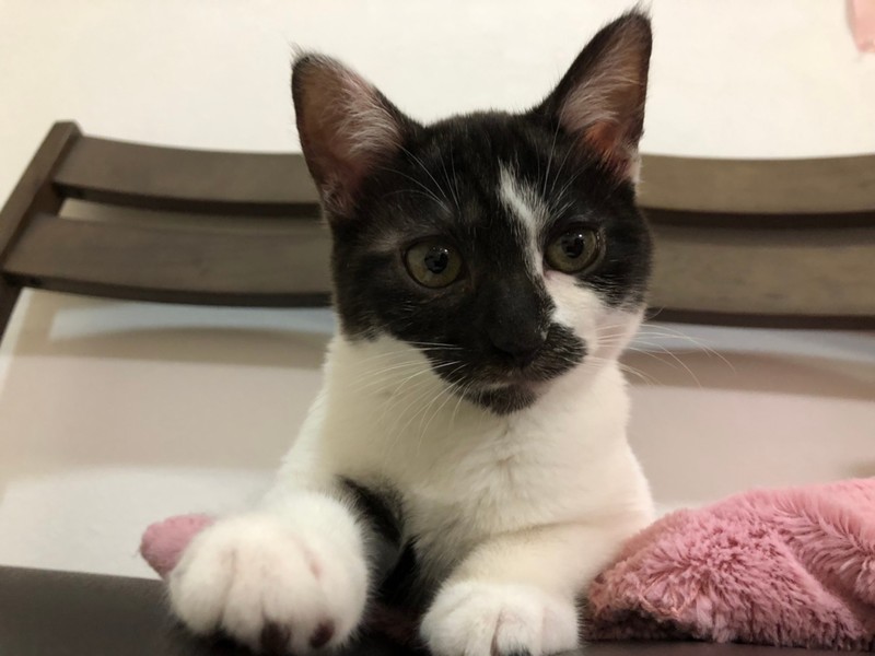 | 特徴(性格など) | 2020.12.20生まれ(推定) 毛色:白黒 背中にうっすら入ったグレーの縞模様と うっすら紫っぽい肉球が可愛らしい白黒女の子。 短めでプリプリ動くカギしっぽがチャームポイント♪ お顔が黒くて少しわかりにくいですが、好奇心旺盛なクリクリの瞳をしています。 手足が太く少しぽってりした体型もなんとも言えません♡ 猫じゃらしが大好きで、一度捕まえると咥えてどこまででも持っていきます♪ ナデナデも大好きで、眠くなると膝の上に乗って 頭をグリグリしながら撫でてアピールしてくれますよ☆ |