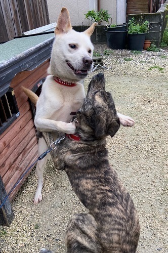 | 特徴(性格など) | ●仮名「マシュ」君です。 ●細身・足長、スタイル抜群、紀州犬風味のかっこいいワンコです。 現在は、体重20キロほどの大き目中型犬ですが、今後お肉が付いてきたら、23~25㌔ほどになるかと思われます。 ●人が大好き! 「お座り」「お手、おかわり」「伏せ」ができます。 まだ幼い部分があり、甘えた君で落ち着きはありませんが、基本 人には従順で、気のいい、可愛いわんちゃんです。 ただ、社会性はまだ未知数の部分があり、これから色々経験を積んでいく必要があるかと思います。 ●若くて大きいので、お散歩の時にリードをしっかり持って教えてあげないと、好き勝手に右に左にぐいぐい引っ張っていこうとします。 また猟犬気質が強く、鳥や猫を見たり、自転車やバイクが通り過ぎる時など、急に動く物に興奮して追いかけようとする傾向があるので要注意です。 元々 人に従順な気質のわんちゃんなので、きちんとしつけてあげたら、飼い主には忠実で人とコミュニケーションが取れる素敵な犬になると思います。 ●トイレは完全外派です。 ●食欲旺盛、とても元気で健康です。 ●ノミダニ駆除、虫下し、フィラリア予防薬投薬済み。 |